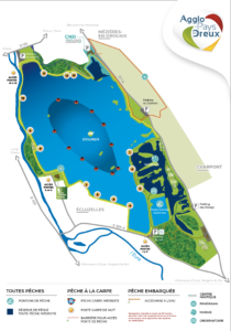 La pêche sur le plan d’eau de Mézières Ecluzelles est réservée aux titulaires d’une carte de pêche fédérale : www.cartedepeche.fr..